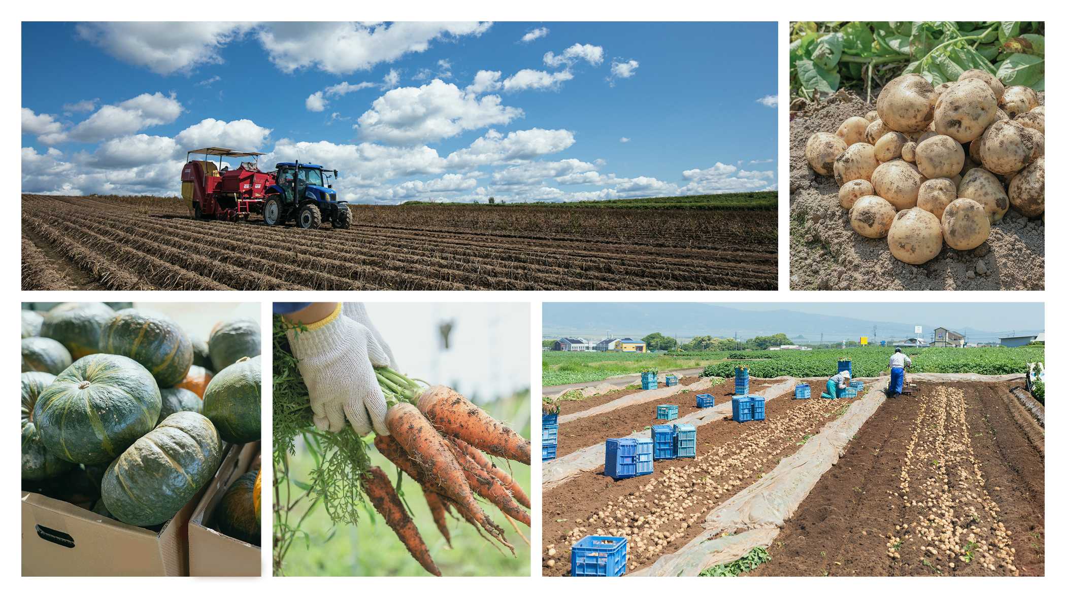 地域で育まれた新鮮な農産物を量販店様を通して消費者の皆様に届けています。馬鈴薯・玉ねぎ・かぼちゃなどを中心に生産者との信頼関係を大切にしながら、安全で高品質な食材を安定的に供給しています。